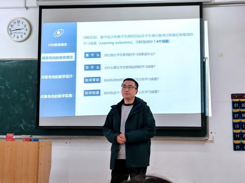 校督查室屠教授结合自身教学经验,从OBE教学理念中“以学生为中心”的核心要求出发,进一步阐述了“和学生在一起”的教育理念。他强调,教师不仅要“备课程内容”,更要“备学生情况”,通过深度了解学生的知识基础、兴趣偏好和学习痛点,实现从“以教材为中心”到“以学生发展为中心”的转变。他指出,教育是心与心的对话,和学生在一起,不仅是空间上的陪伴,更是情感上的共鸣、思维上的同频。只有真正走进学生的世界,才能让知识传递更有温度,让能力培养更见实效。